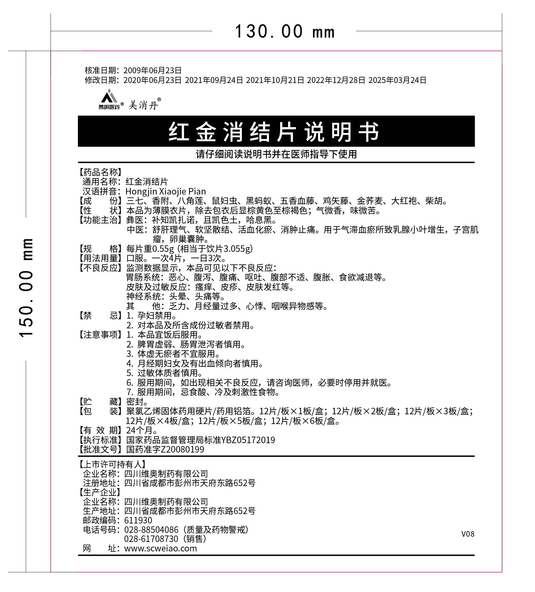 我司對紅金消結(jié)片說明書(批準文號:國藥準字Z20080199)進行修訂